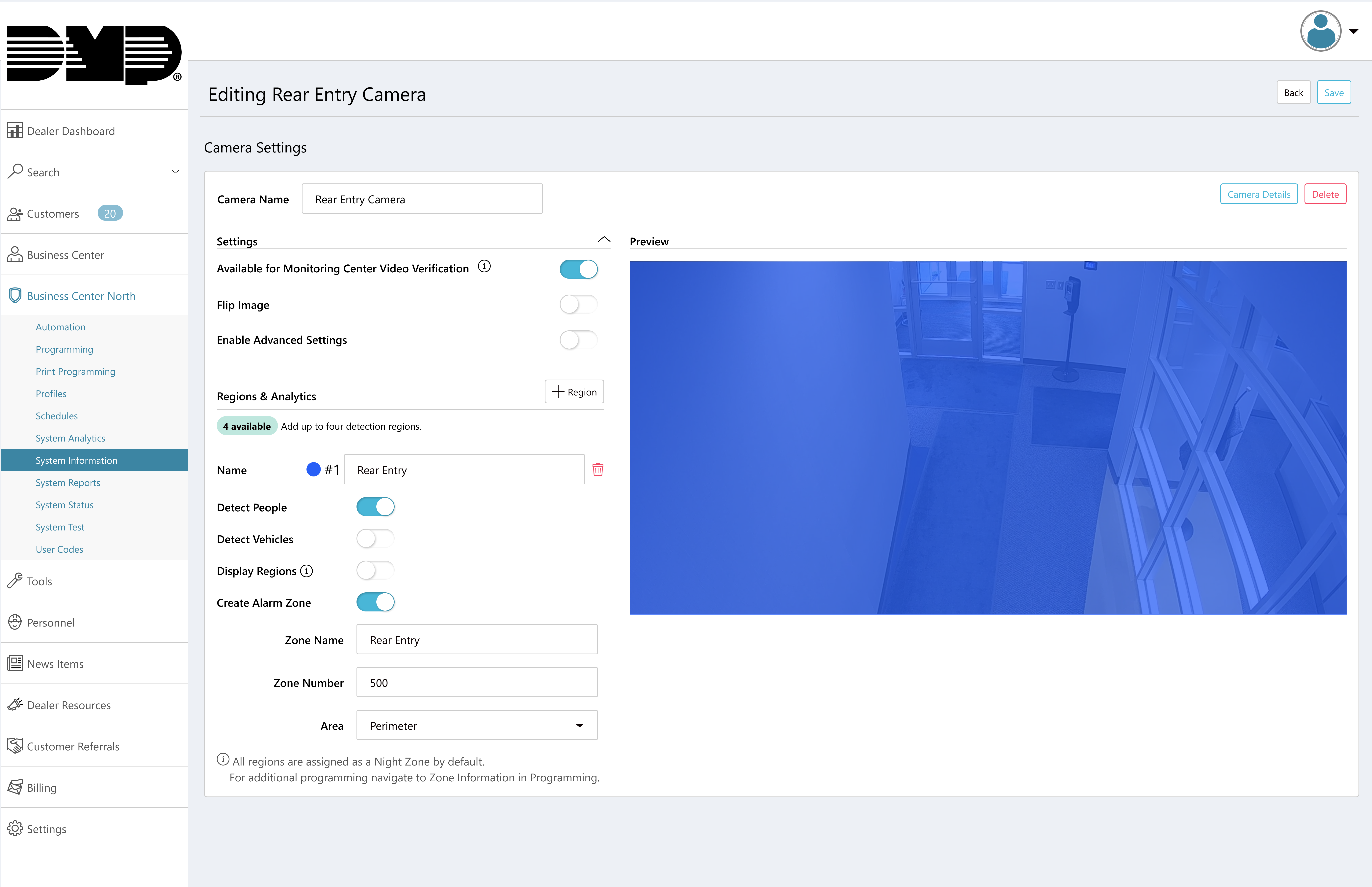 Note: If any detection region on the camera is set as an Alarm Zone, all detections for that camera will only record events when the zone is active. Virtual Keypad users will only receive event recordings when the zone is active.