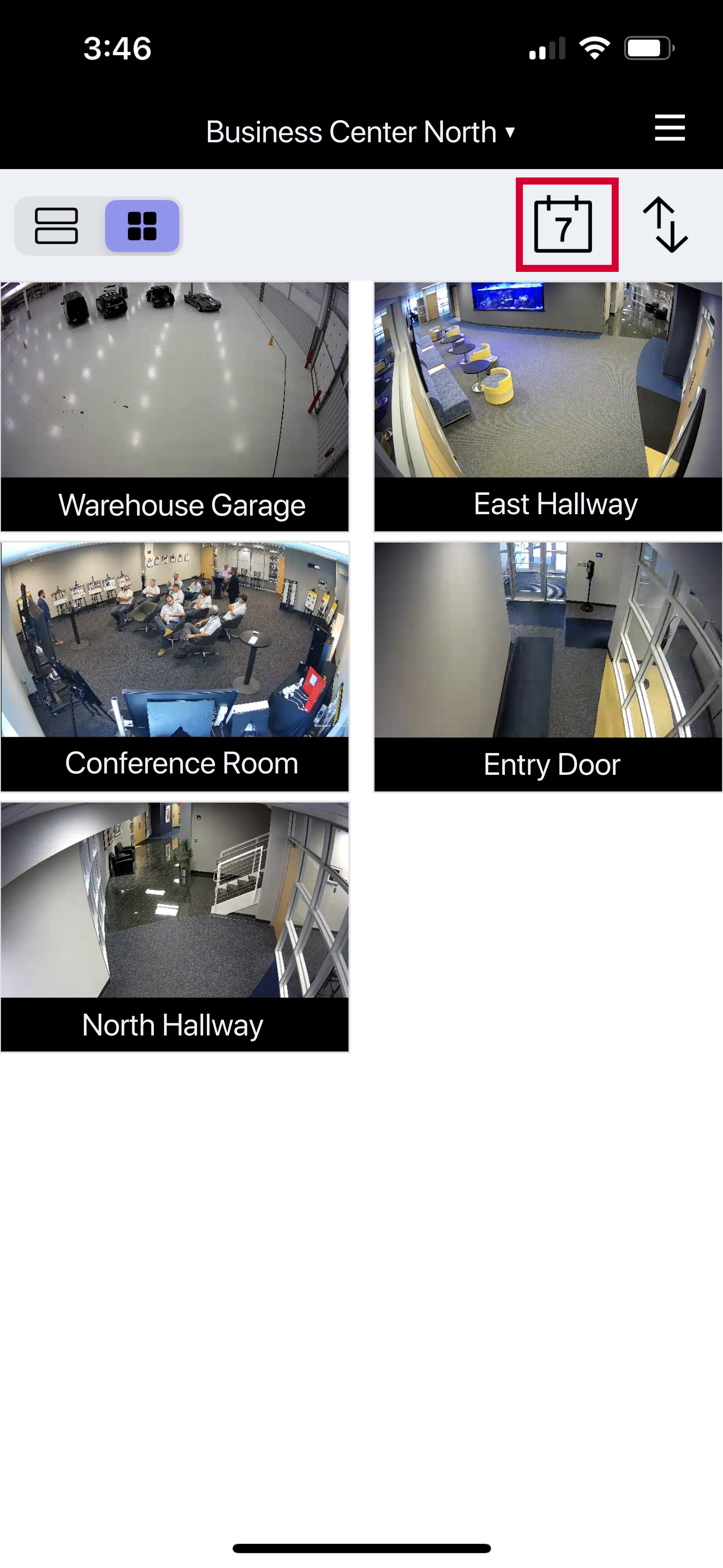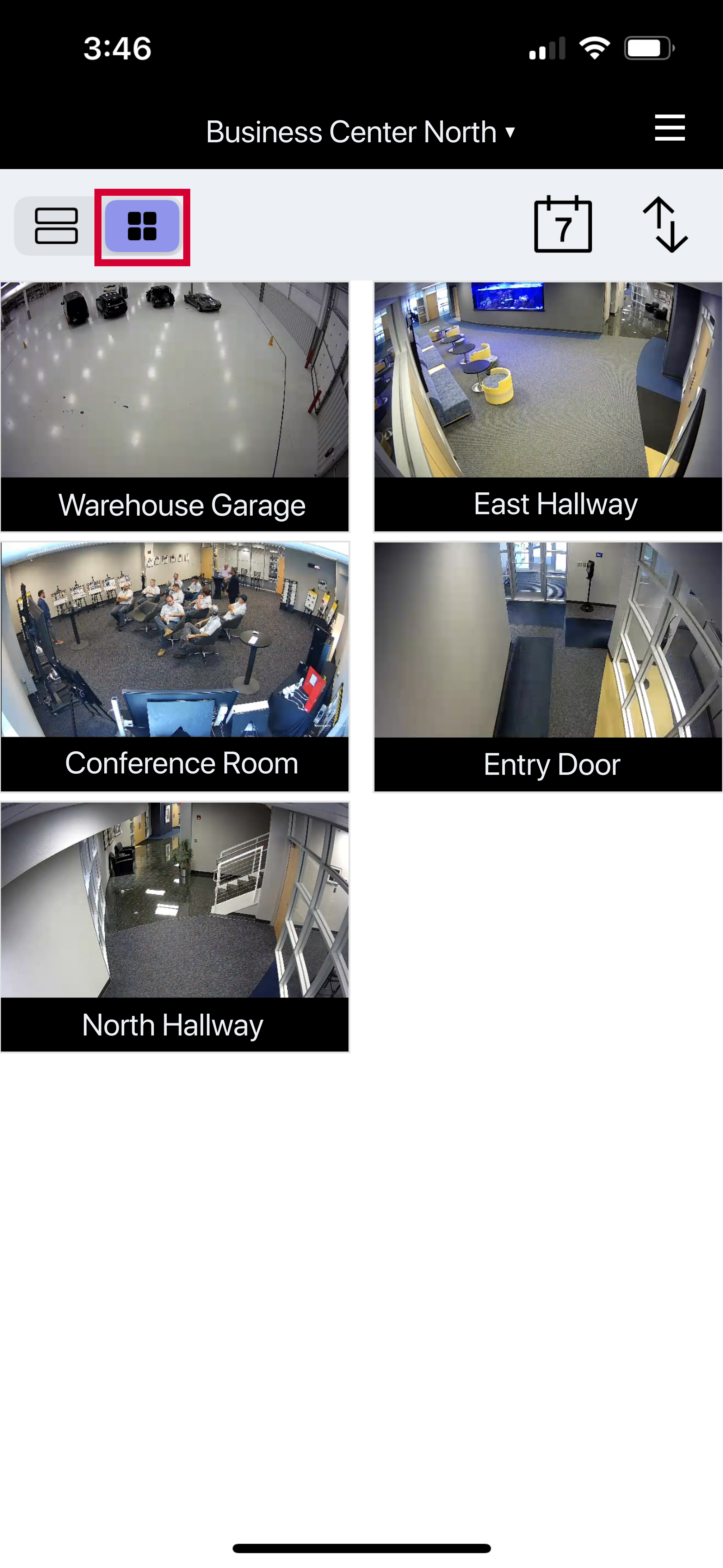 Use this view to see live video clips from multiple cameras in a grid format. Scroll down to see more cameras.